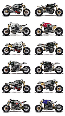 These images are screaming around the bike press and blogs at the moment, and I'm posting them here because, frankly, this is the most exciting concept BMW's come up with since the R1200C. As with the 1200C, this bike is the perfect combination of retro and robotic. Thanks MotoType for the big images!